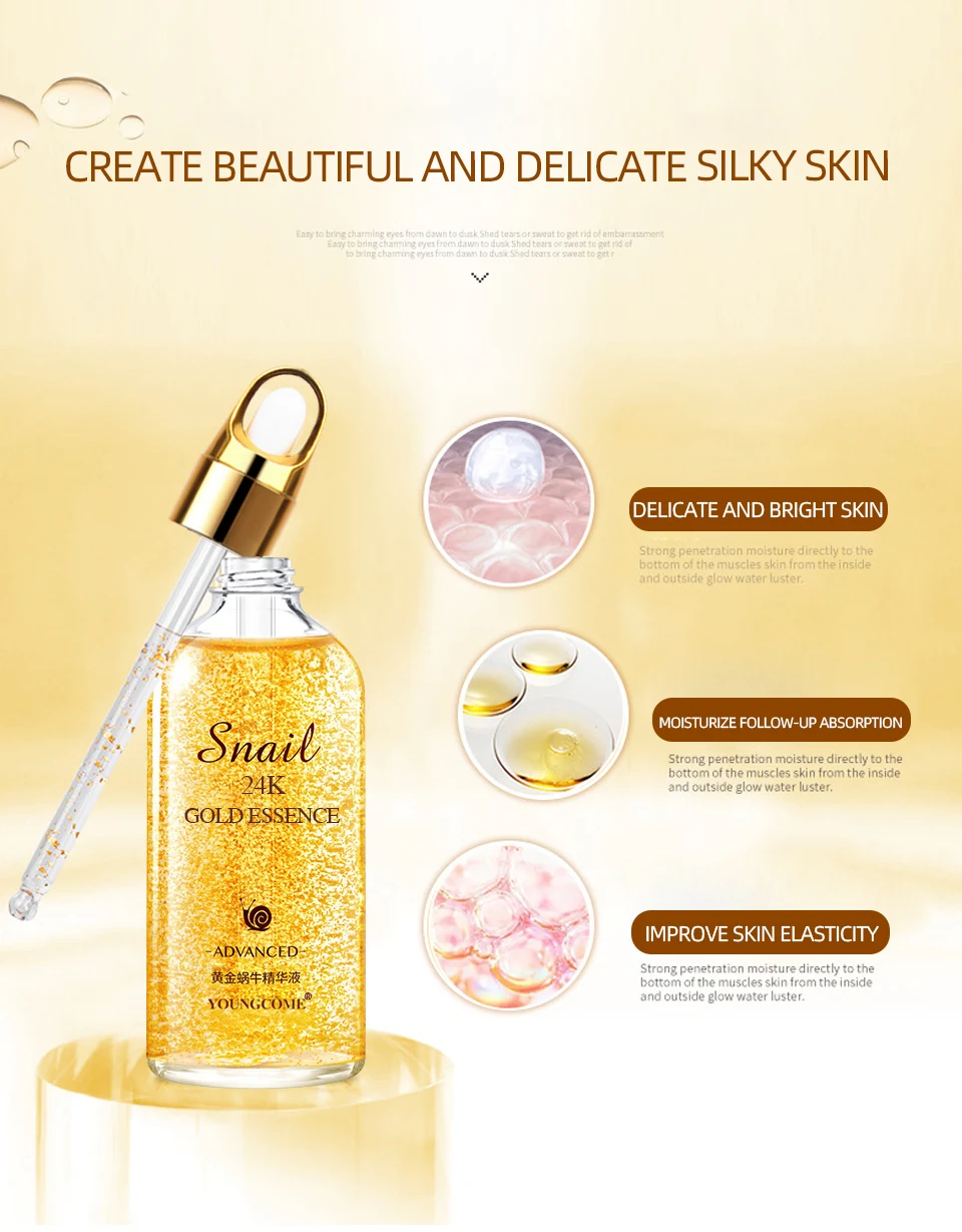 YOUNGCOME 24K Golden Rice Face Essence Moisturizing Anti-aging Wrinkle Hyaluronic Acid Serum Shrinks Pores Repairs Skin